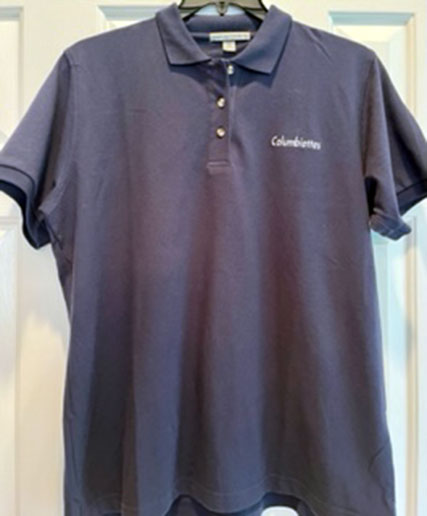 Short sleeve, 3 button collared golf style polo shirt with the Columbiettes name Only. Size 3XL and 4XL Pictured color is Navy Please indicate SIZE and COLORĀ