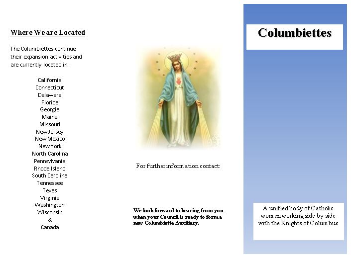 Promotional Brochure Columbiettes 50 max per order