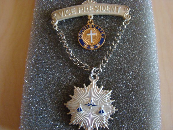 Vice President jewel with appropriate level ribbon. When ordering indicate if the jewel is for auxiliary chapter or state.